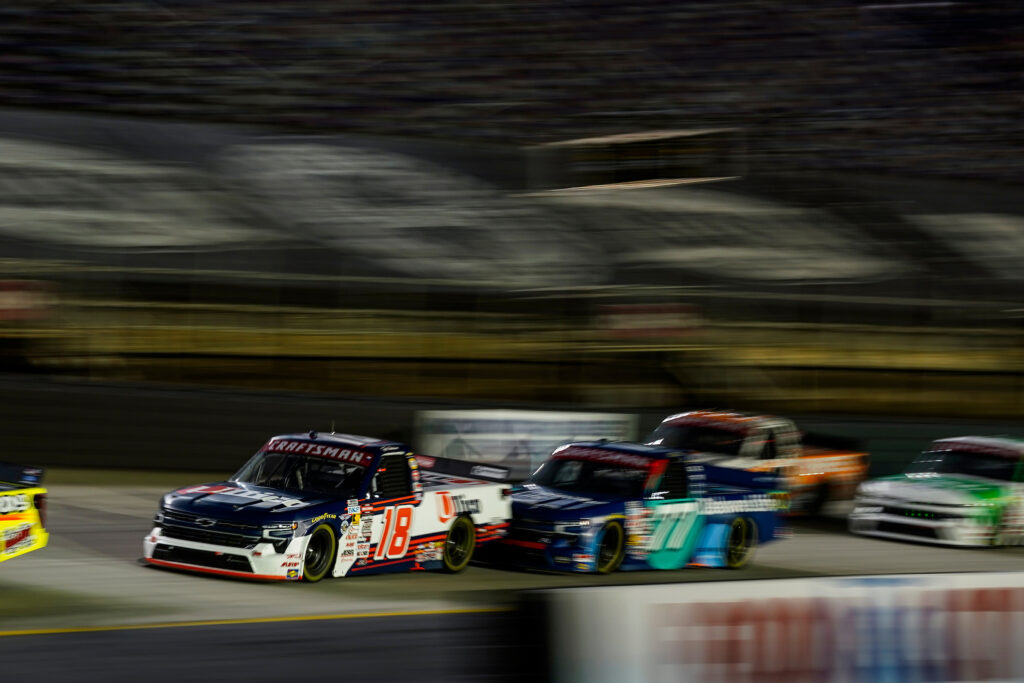 Tyler Ankrum, driver of the No. 18 Ullico Chevrolet Silverado RST settled just outside the top 10 for tonight’s finishing result at Bristol Motor Speedway. In the Friday afternoon qualifying session, Ankrum set the No. 18 Ullico Chevrolet 20th in line to start the 250-lap event. The young driver felt something off in his hot lap and the team later found an issue with the fuel pump before the race started. The team was able to get the issue squared away before the drop of the green flag and held their spot in line. The driver of the No. 18 Chevrolet jumped up to 18th on the opening laps of the Tennessee Army National Guard 250 and remained constant in that position. The field spread out to single file, forcing the passing conditions to be minimal.